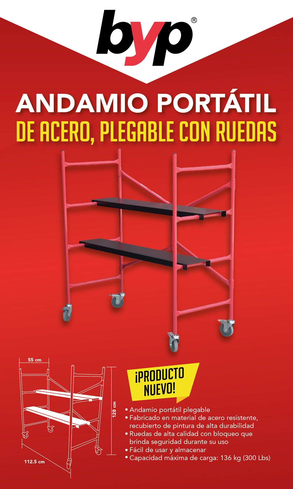 ANDAMIO PORTATIL DE ACERO, PEGABLE CON RUEDAS