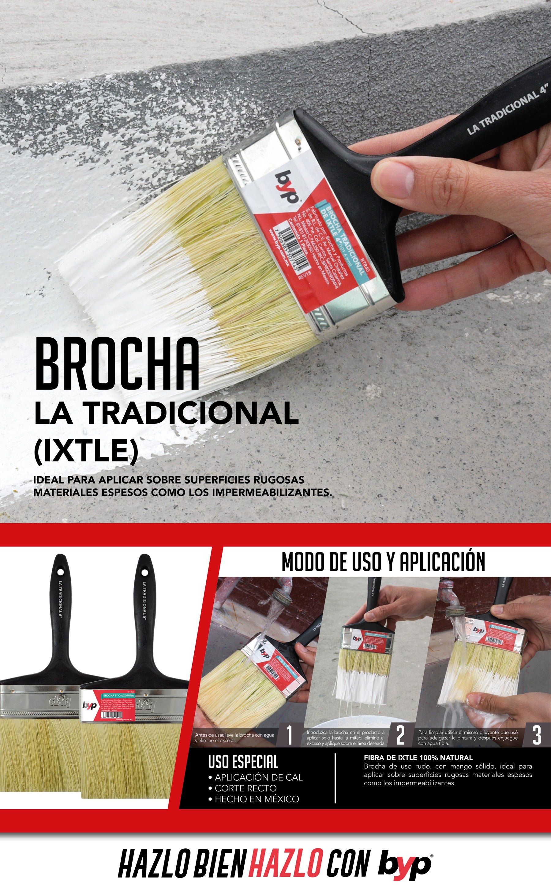 Brocha recomendada para uso rudo, el Ixtle se caracteriza por su resistencia por lo que este producto es ideal para trabajos en superficies rugosas.