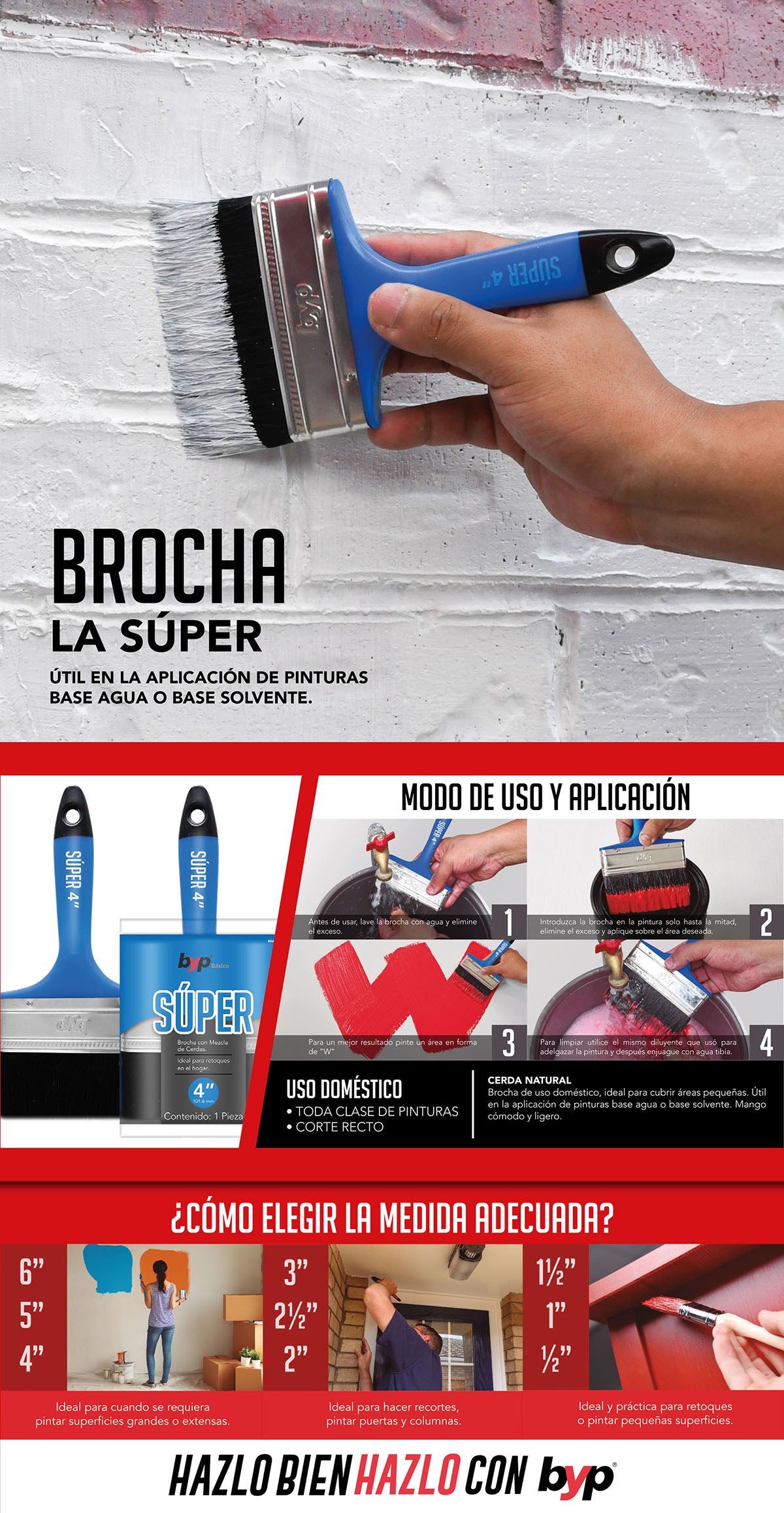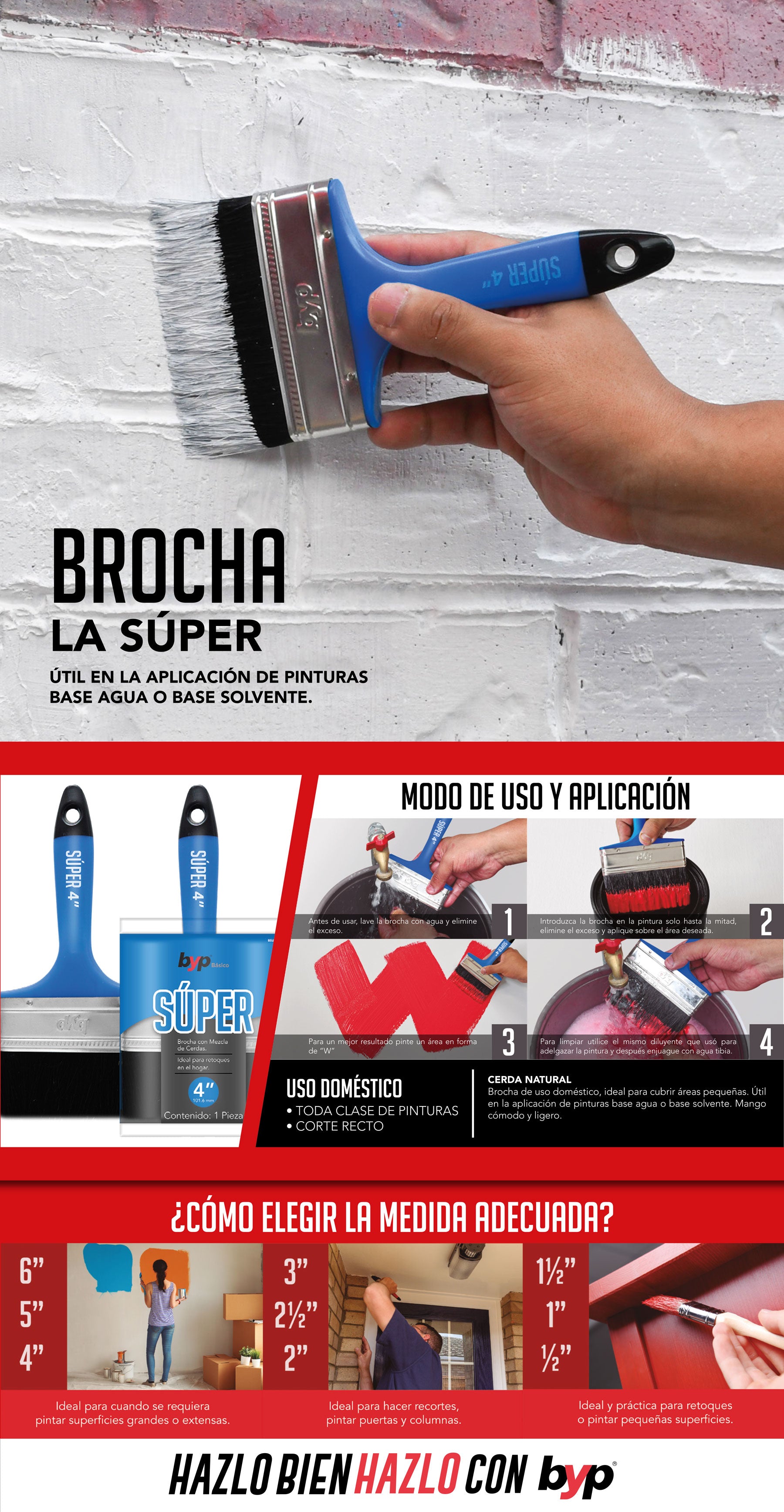 Puede aplicar pintura de agua o aceite sin problemas. Su mango compacto permite un mejor manejo y correcta aplicación de pintura.