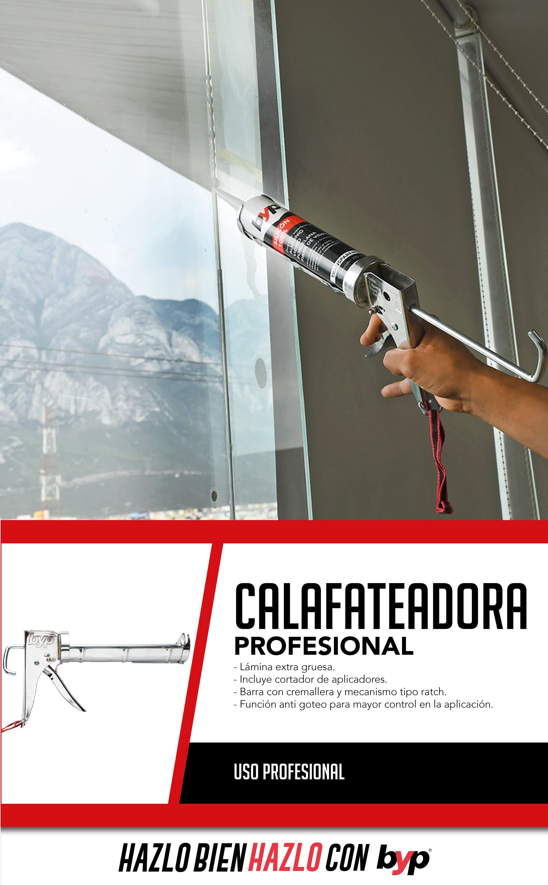 Pistola calafateadora profesional byp, recomendada para el uso de aplicaciones de selladores de silicón.