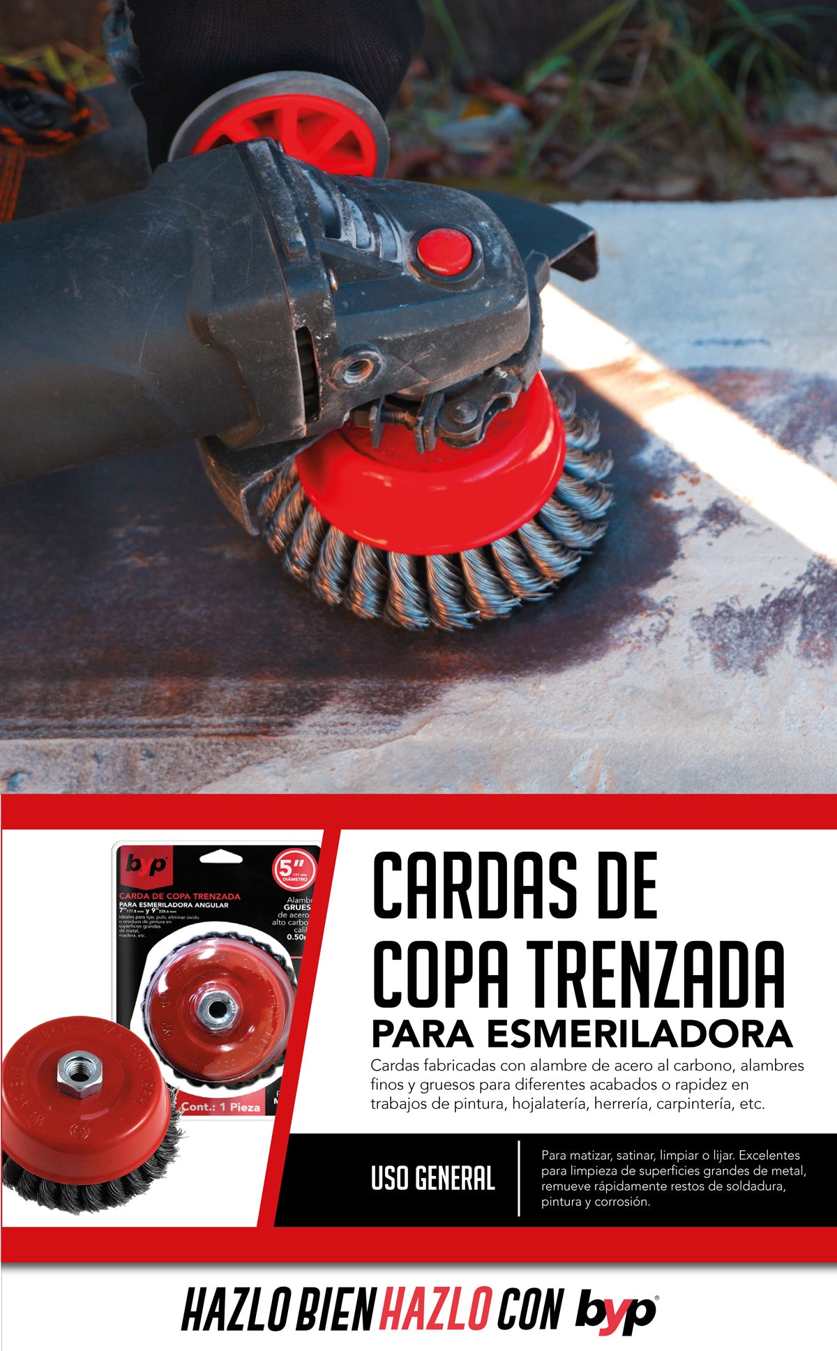 Una excelente herramienta para limpieza de superficies grandes de metal, remueve rápidamente restos de soldadura, pintura y corrosión.