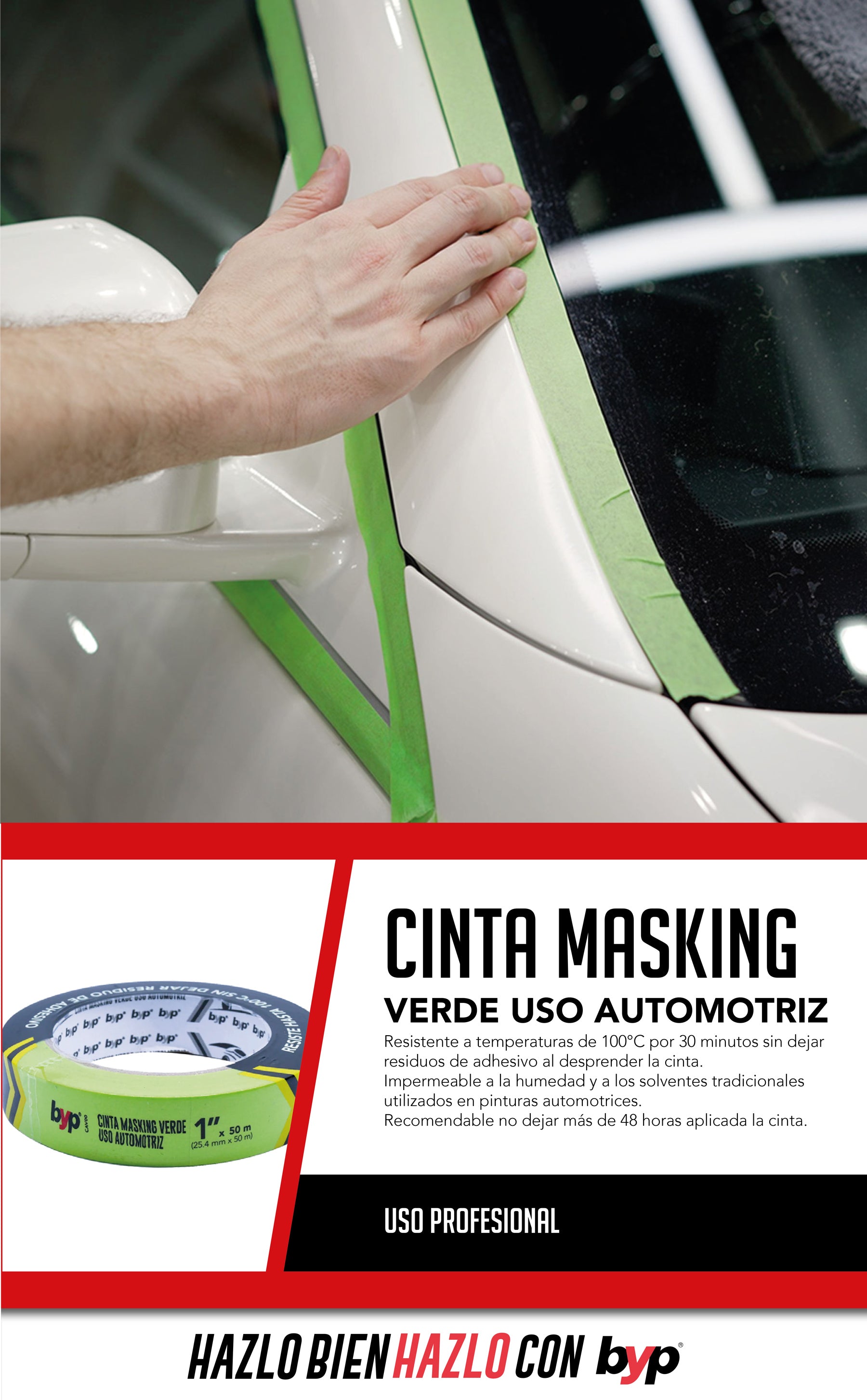 - Resiste procesos de horneo en cabinas de pintura de hasta 100°C por 30 minutos sin dejar residuos de adhesivo al desprender la cinta