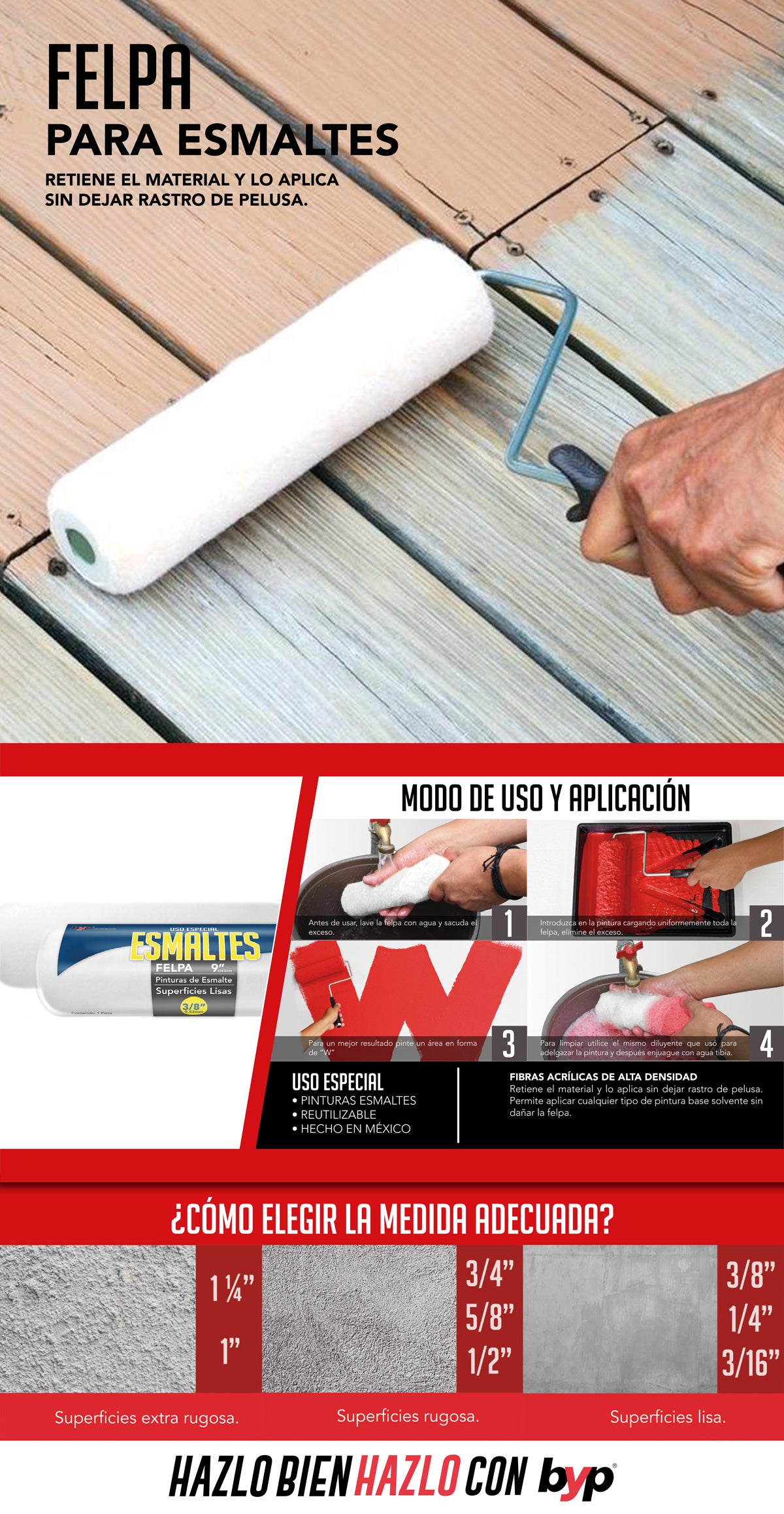 Permite además aplicar cualquier tipo de pintura base solvente sin dañar la felpa.