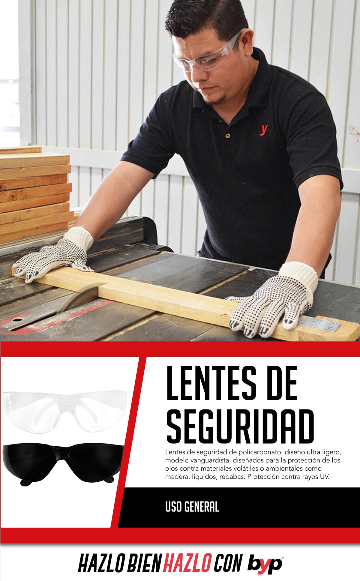 Lentes de seguridad fabricados con policarbonato , cuenta con un diseño ultra ligero y modelo vanguardista, ayuda a la protección de los ojos para prevenir accidentes.