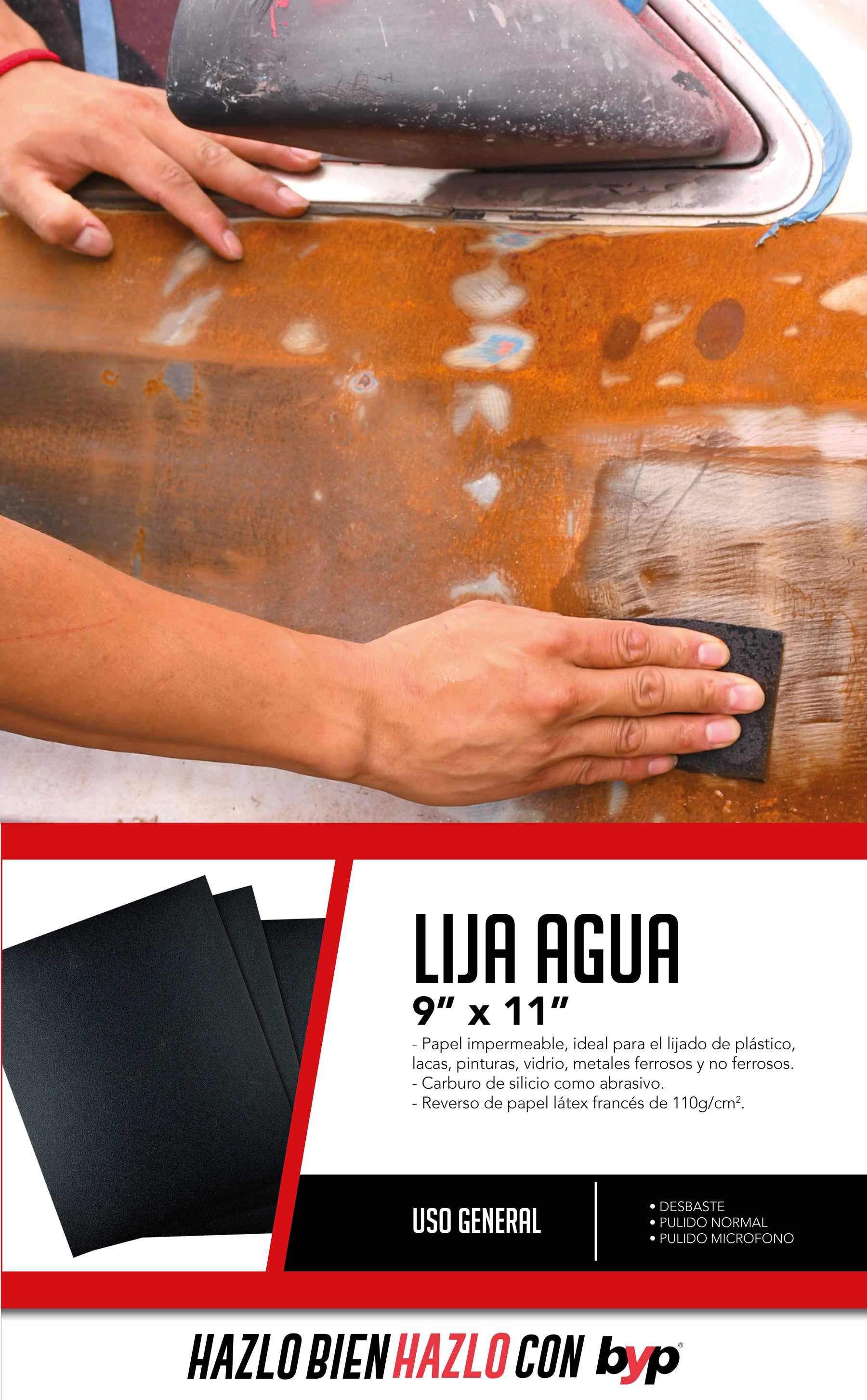 De carburo de silicio como abrasivo. Grano delgado ideal en trabajos para lijar vidrio, mármol, cerámica, goma, plásticos, fibra de vidrio.