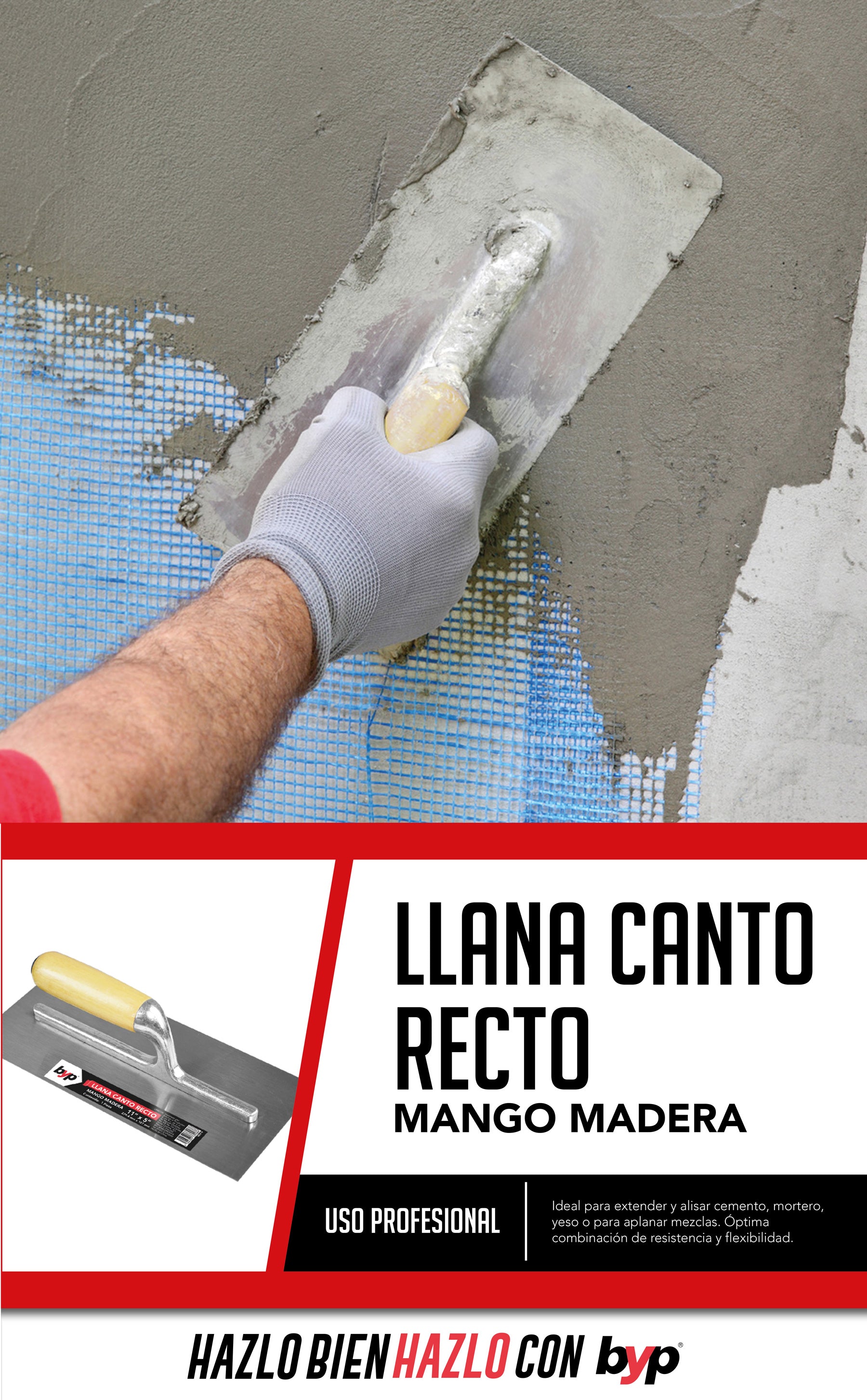 Su modelo de canto recto la hace Ideal para extender, emparejar y alisar revoques.