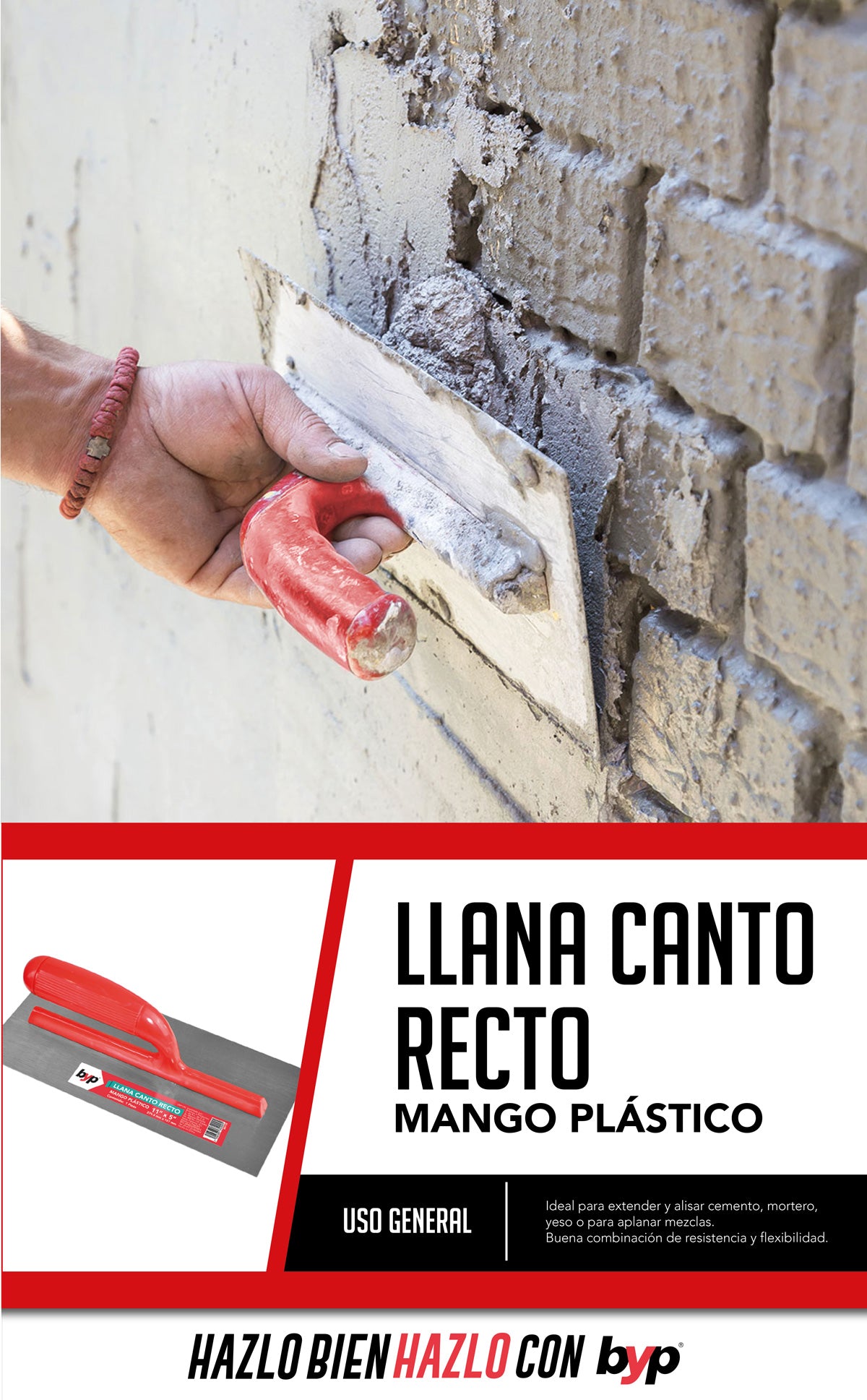 Con mango de plástico que facilita su trabajo. Ideal para extender, emparejar y alisar revoques.