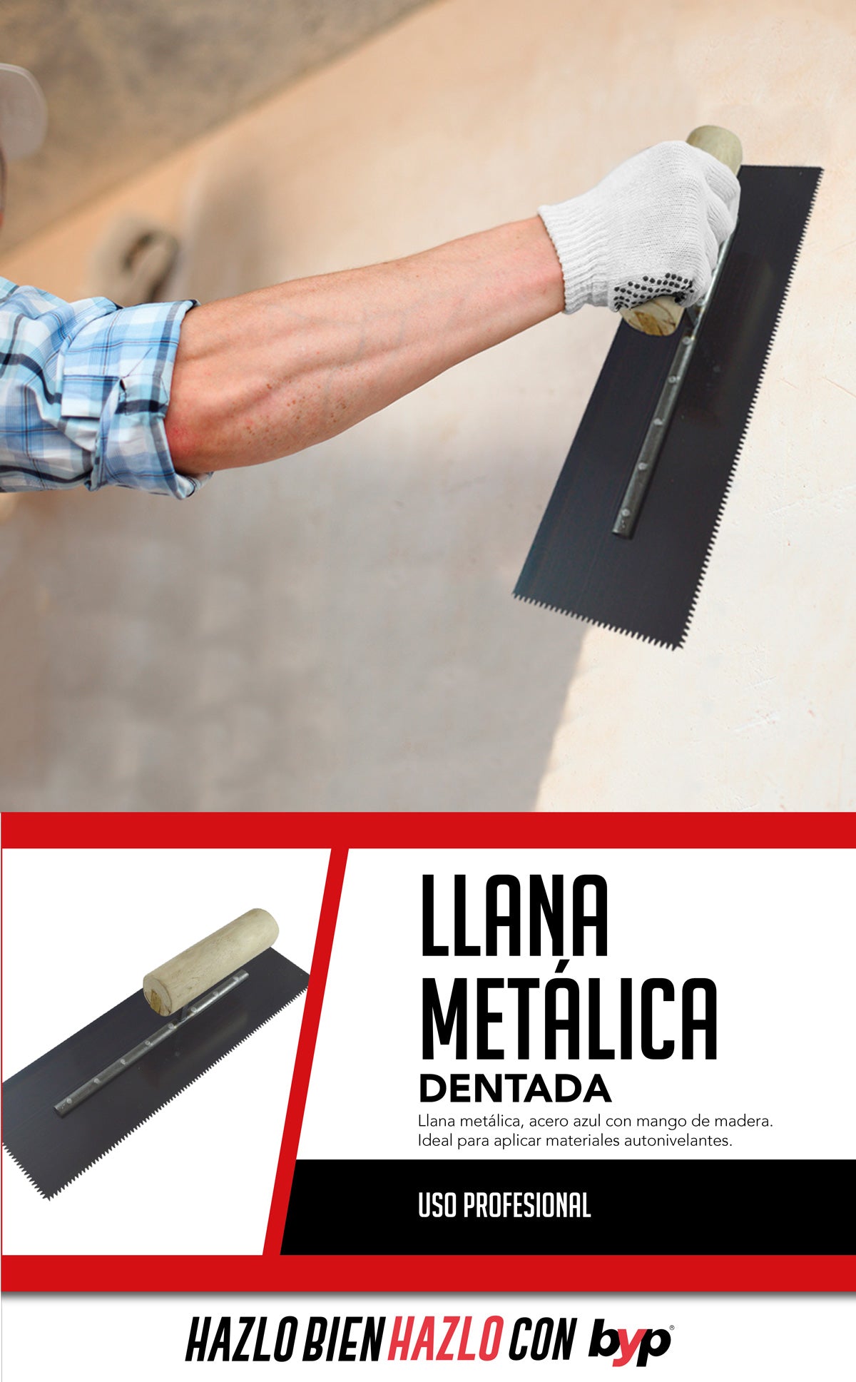Llana metálica, acero azul con mago de madera. Ideal para aplicar materiales autonivelantes.