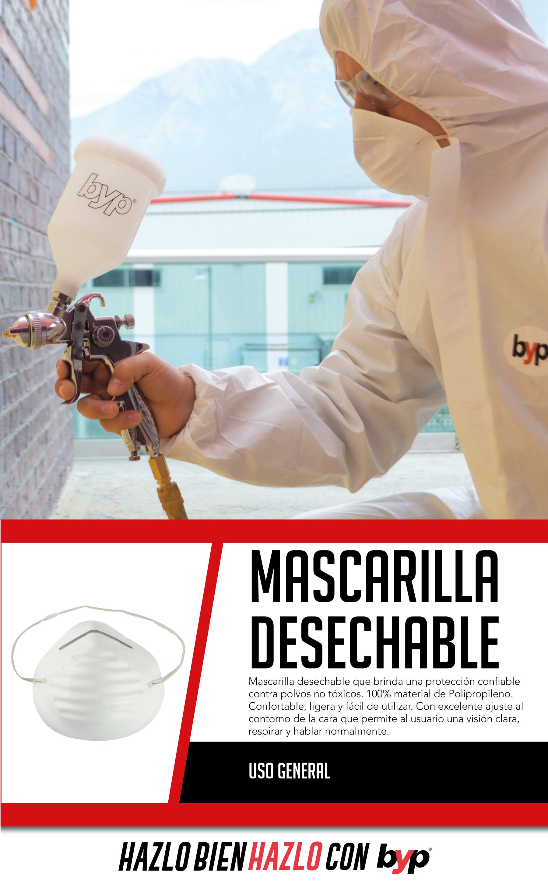 Mascarilla desechable que brinda una protección confiable contra polvos no tóxicos. 100% material de Polipropileno.