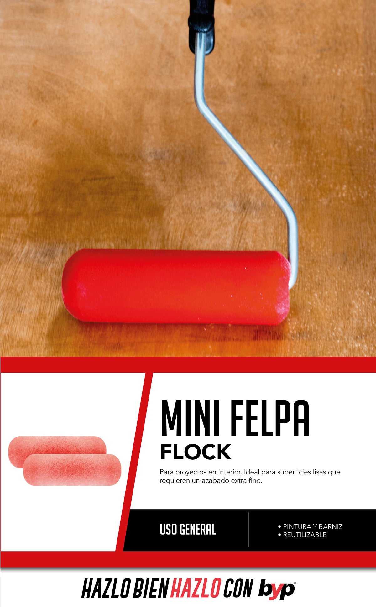 Mini felpa de flock, ideal para la aplicación de barniz. Su tamaño compacto facilita el trabajo y su material ayuda a lograr ese acabado uniforme al trabajar con barniz en muebles de madera.