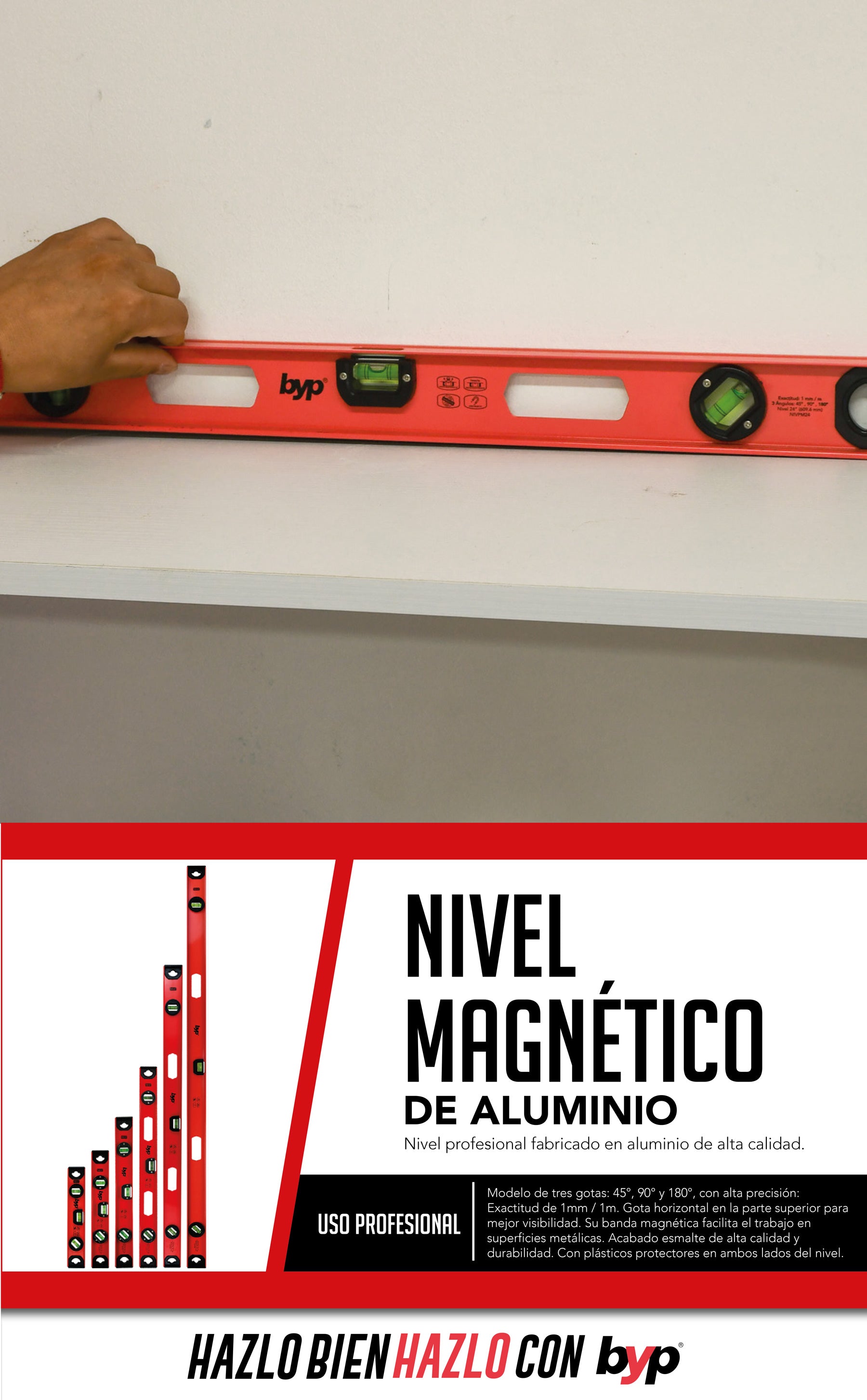 Nivel profesional fabricado en aluminio de alta calidad, diseño en forma de I . Frascos de alta precisión garantizada por control numérico en el proceso.