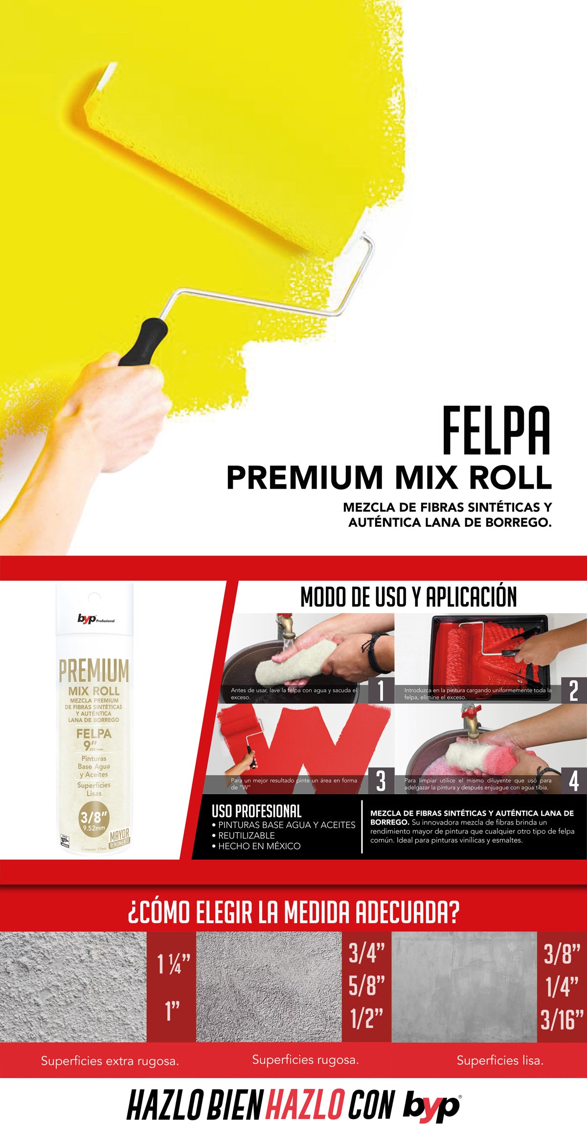 La felpa premium mezcla con su innovador diseño fibras sintéticas y auténtica lana de borrego ofrece gran calidad, lo que garantiza un rendimiento mayor de pintura que cualquier otro tipo de felpa común.