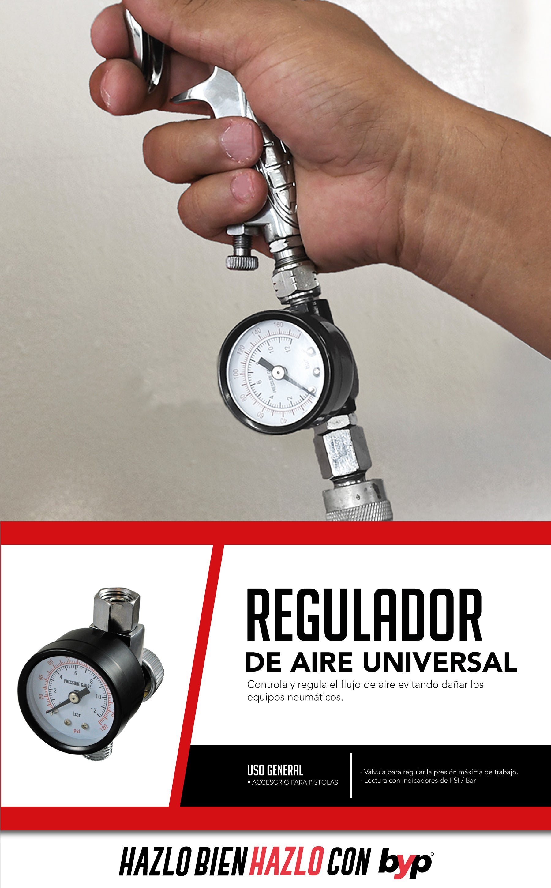- Lectura con indicadores de PSI / Bar